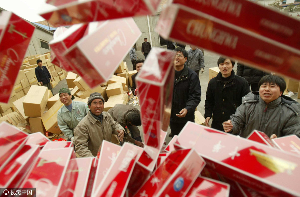 2015年11月17日,昆明,警方缴获名牌假酒900多瓶,涉案价值75万余元。