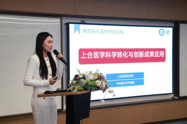研究院科学家团队代表宋雨阳老师以《上合医学科学转化与创新成果应用》为题,分享了细胞治疗、AI 病理诊断等前沿科研成果,展现了团队雄厚的科研实力,也让现场嘉宾看到了精准医学成果依托上合医学研究院平台实现转化落地的广阔前景。
