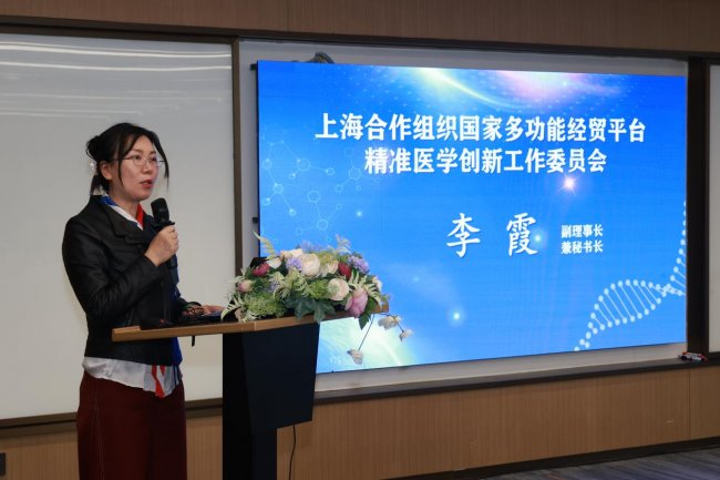 随后,上海合作组织国家多功能经贸平台精准医学创新工作委员会副理事长兼秘书长李霞女士致辞,她分享了精准医学创新工作委员会的建设初心与发展规划,展现了全力支持研究院启动建设的坚定决心,以责任与担当为上合医学研究院行稳致远筑牢根基。