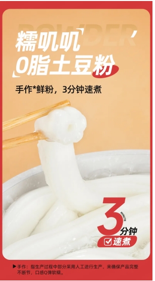 同时,产品采用0脂非油炸配方和工艺,以土豆淀粉为主料,兼顾了健康性与口感满足感。