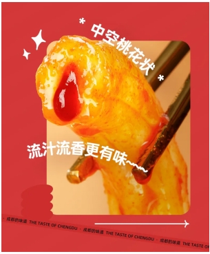 为了让这一特色小吃能够走向全国,阿宽食品进行了深入探讨,创新性地将东北“粉耗子”的独特形态、咀嚼感,和川渝风味的麻辣鲜香进行结合,创造出一款具有鲜明记忆点的新式方便食品。