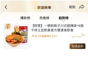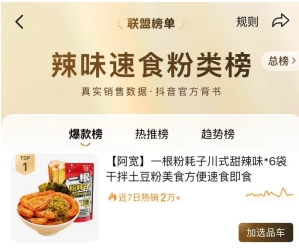 一根粉耗子荣登抖音辣味速食粉类爆款榜、趋势榜双榜榜首