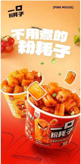 一口粉耗子在便捷性上有了更好的提升,冲泡即食,一口一个;在口味上又新增了当下流行的甜辣火鸡味,进一步拓展了粉耗子的消费场景、满足不同人群的需求与体验。