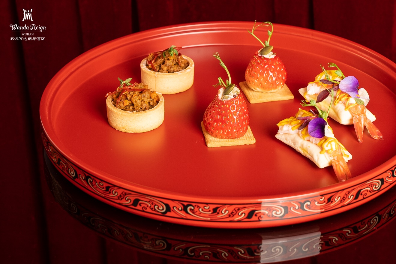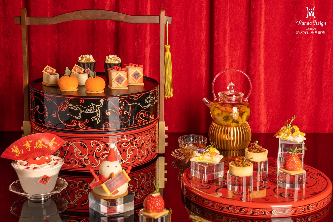 2026年1月,武汉万达瑞华酒店新春系列下午茶正式上线,以 “红韵国风 + 味觉创新” 为设计灵感,从视觉到味觉带来新年节气氛围。将年俗符号化作可食用的趣味造型,甜而不腻的口感适配冬日味蕾。
