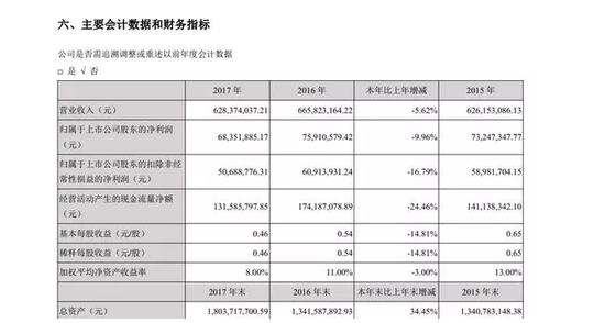 2108年3月29日,庄园牧场公开了2017年年度报告,实现营业收入约为6.28亿元,同比下降5.62%,归属于上市公司股东的净利润接近0.68亿元,相较于2016年0.76亿元,降幅为9.96%。其营收与净利均呈下降趋势。