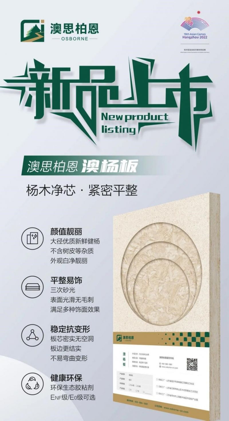 同时,澳思柏恩结合杨木木种特点,突破行业技术壁垒,采用芯层刨花平均厚度小于0.6mm,刨花形态及厚度均匀,定向铺装,使成品板材结构更加稳定、不易变形。