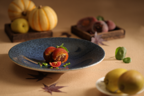 “霜降摘柿子,立冬打软枣”,此时节柿子红熟,寓意“事事如意”。一品淮扬中餐厅以传统食俗为灵感,创作「柿柿如意卷」。选用当季软糯柿肉入馅,裹以薄如蝉翼的饼皮,卷成如意之形,蒸制后晶莹剔透。入口甜润不腻,柿香萦绕齿间,一碟橘红,既应和霜叶绚烂的秋色,亦寄托对生活的美好祝愿。