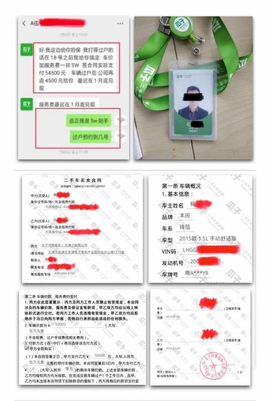 根据优信集团的调研,广西柳州的一位车商负责人覃先生,讲述了其近期在瓜子二手车的购车经历,并展示了相关交易资料。