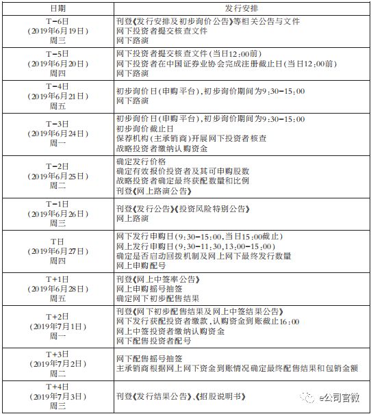 本次发行的初步询价时间为2019年6月21日~2019年6月24日(T-4日~T-3日)的9 :30-15:00。