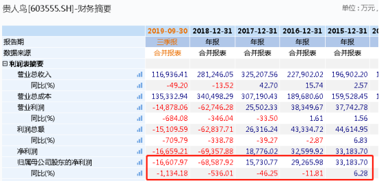 盲目扩张加上经营策略的失误,导致了上市后的贵人鸟出现了业绩连续的下滑态势。据最新数据显示,今年1至9月,贵人鸟归属上市公司股东的净利润为-1.66亿元,同比转亏下滑1134.18%;归属于上市公司股东的扣非净利亏损达2亿元。