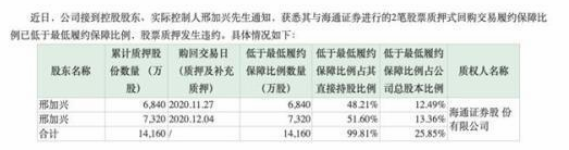 8月6日晚间,拉夏贝尔披露最新消息显示,其实控人邢加兴持股质押比例接近100%,且已构成违约,这也意味着实控人的质押已经爆仓。据悉,从2017年11月至今年6月,邢加兴先后6次将所持股份质押给海通证券。