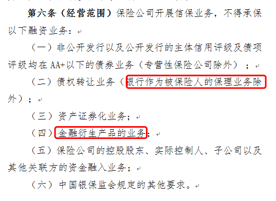 不得承保金融衍生产品类业务