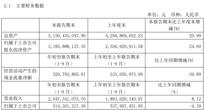 10月29日,安图生物披露2020年三季度报告,前三季度归属于母公司所有者的净利润5.14亿元,同比减少4.39%;营业收入20.47亿元,同比增长8.12%。