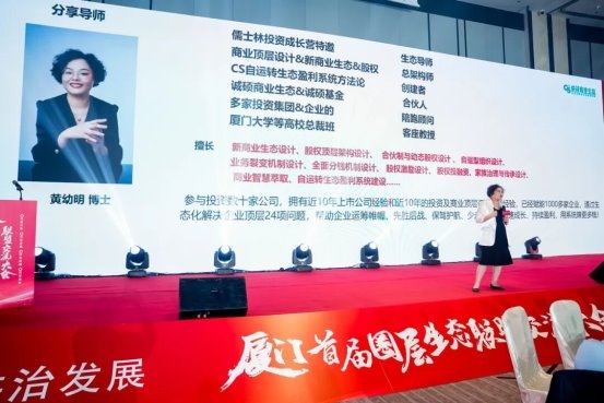 黄幼明博士(诚硕商业生态合伙人) 以《科学共建生态·挖掘黑海宝藏》为题,指出生态思维的核心在于“从竞争逻辑转向共生逻辑”。她通过案例剖析,引导企业家跳出红海内卷,通过资源链接与能力互补开辟价值黑海。