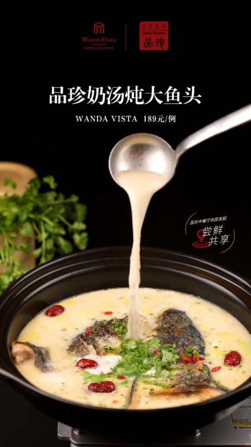 “品珍奶汤炖大鱼头” 则展现了砂锅煨制的另一种精妙。 “猛火攻白,文火出醇” 的传统技法,让鱼头中的胶质与营养充分融入汤中,汤色逐渐变得乳白浓稠,香气扑鼻。炖好的鱼头肉质嫩滑,轻轻一抿便脱骨,每一丝鱼肉都饱含奶汤的鲜美;奶汤醇厚丝滑,入口绵密,没有丝毫腥味,只留下食材本真的鲜香。这道菜品不仅口感丰富,更富含胶原蛋白,暖身又滋补,成为冬日餐桌上的人气之选。