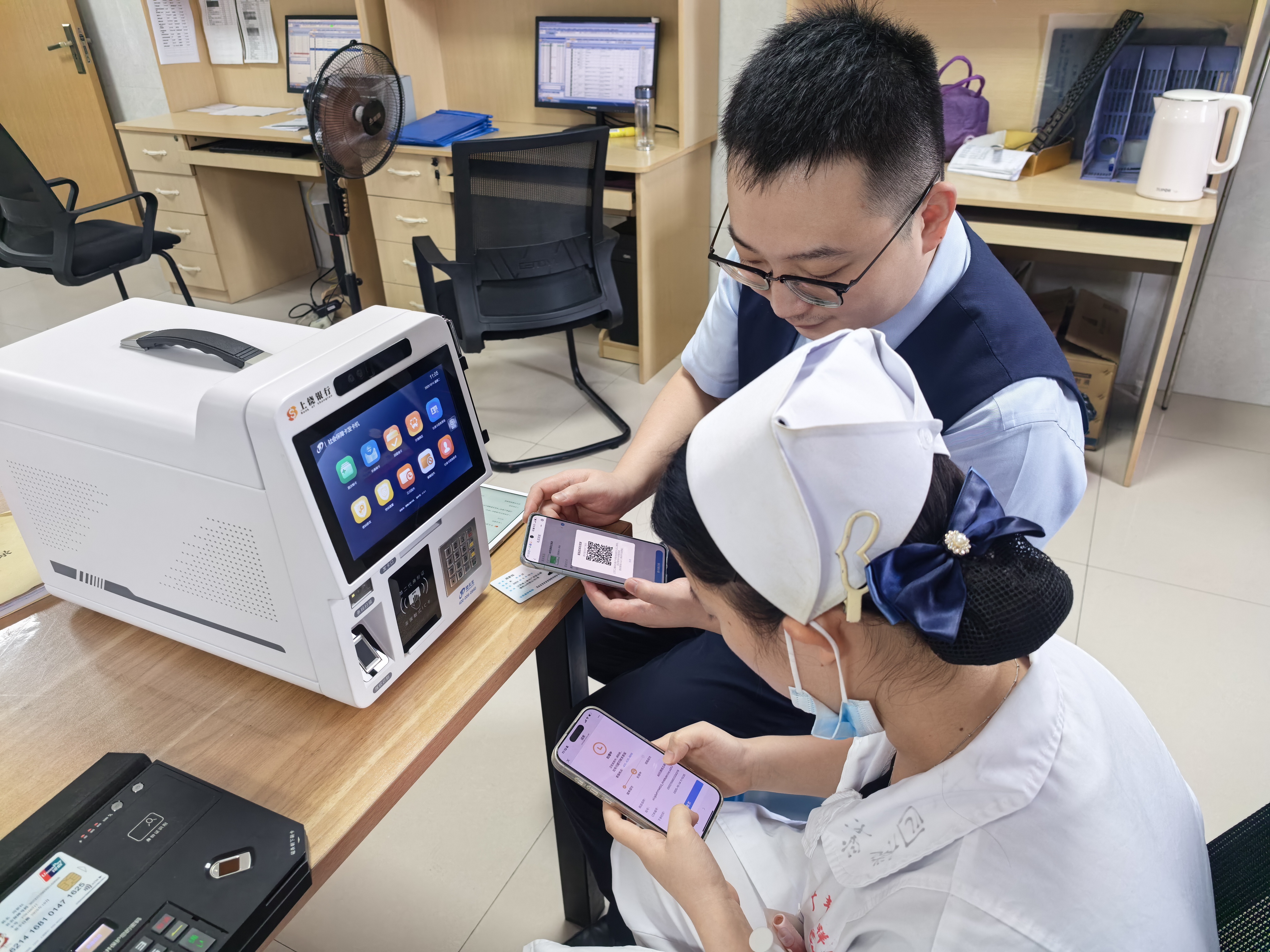 活动现场,该行工作人员携带移动制卡设备、身份核验终端等器材,确保服务高效开展,为有需求的医护人员提供“一站式”服务:从身份信息采集、资料快速审核,到新卡即时制发、金融功能激活,全流程仅需10分钟即可完成,最大限度减少对医护人员日常工作的干扰。期间,该行工作人员还向他们耐心讲解社保卡的金融账户功能、医保结算流程及线上查询缴费操作方法,帮助大家全面掌握社保卡使用技巧。此外,该行还为现场医护人员设置了专属福利:凡是成功办理社保卡并开通金融功能的医护人员,均可即时领取一定金额的微信立减金,用于日常消费抵扣,让服务既有“温度”又有“实惠”。