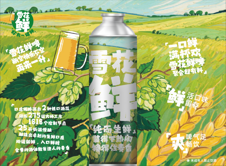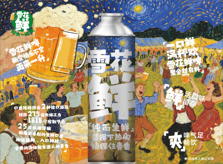 本次推出的“雪花鲜”为一升大罐装。这一容量设计呼应了朋友聚饮、佐餐共享时对畅快尽兴的诉求,“好大一罐鲜,一升更尽兴”的产品理念,旨在为亲朋欢聚、佐餐共饮的场景带来更满足的鲜爽体验。