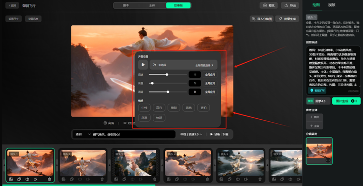 可控角色生成技术确保主角在不同镜头中形象一致,多模型协同适配高清场景、动作戏等不同需求,AI音乐生成能精准匹配画面情绪