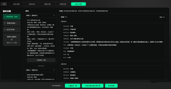 用户只需输入剧本、小说甚至简单想法,平台即可通过 AI 深度解析故事内核,自动生成可视化分镜,再基于写实、二次元等多元模型生成高质量画面,最终一键完成情感配音、口型对齐与智能剪辑,将传统数月的制作周期压缩至数小时,成本降低90%