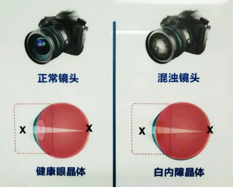 白内障就是我们的镜头坏了、混浊了,只能换一个镜头才能再拍出清晰的照片。