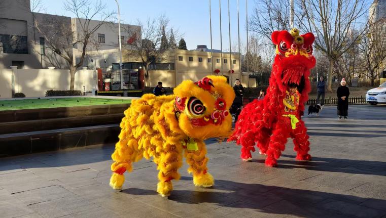 2月17日新春佳节,天津富力万达文华酒店举办“醒狮迎春·福启新年”舞狮活动活动,祈福舞狮呈现热闹的吉庆氛围。