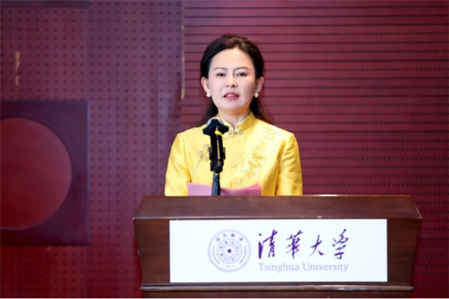边海燕在致辞中对"宝丰碳中和讲席教授"取得的科研成就表示祝贺,勉励"清华之友—燕宝奖学金"获奖学子胸怀家国、回报社会。她介绍,宝丰集团始终聚焦绿色科技与新质生产力发展,积极投身党和国家最需要的产业,深耕现代煤化工、储能制造、新能源发电等领域,努力为保障国家能源安全、推动绿色低碳转型贡献力量。她表示,希望未来进一步深化与清华大学的产学研协作,共同助力教育强国、人才强国和科技强国建设。