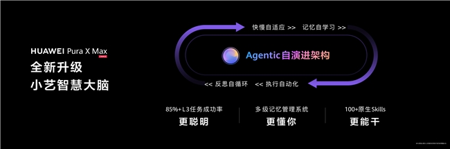 伴随式AI体验跃迁的背后,是小艺Agentic 自演进架构的底层重构、全新升级的小艺智慧大脑。小艺智慧大脑支持快慢思考融合、记忆与自主学习、反思与进化等能力于一体,使小艺能够在长期使用中不断优化执行策略,越用越聪明,越用越贴心。