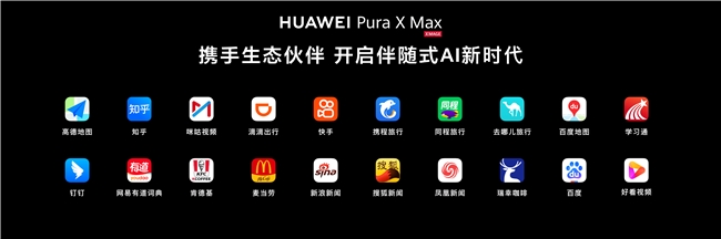 与此同时,华为Pura X Max携手滴滴出行、咪咕视频、知乎等众多生态伙伴带来全新伴随式AI体验,并将与更多伙伴持续联合创新,开启伴随式AI新时代。