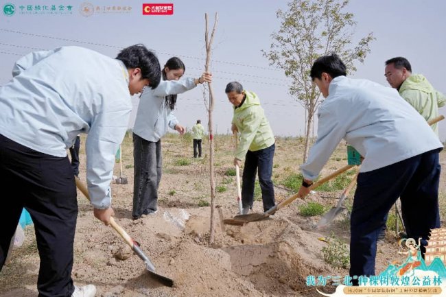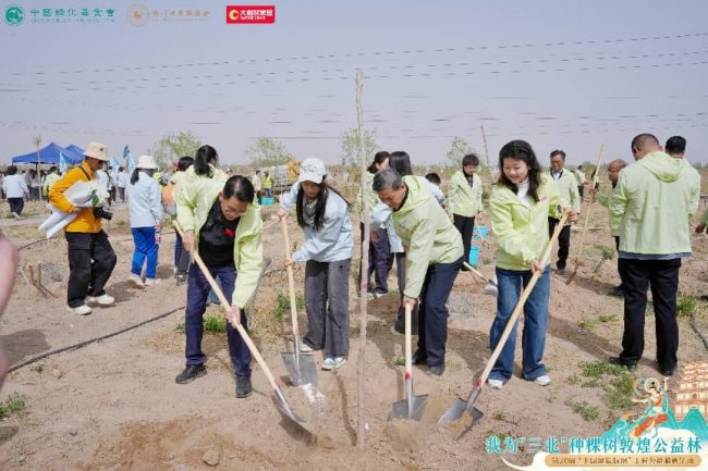 现场顿时热火朝天,大家分工协作默契配合,挥锹培土、扶苗浇水。一棵棵树苗扎根大漠,不仅为丝路绿洲再添新绿,更在每一位参与者心中种下了生态文明的种子。
