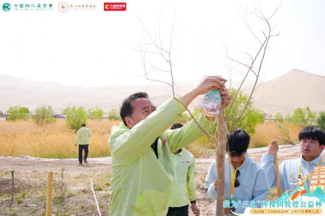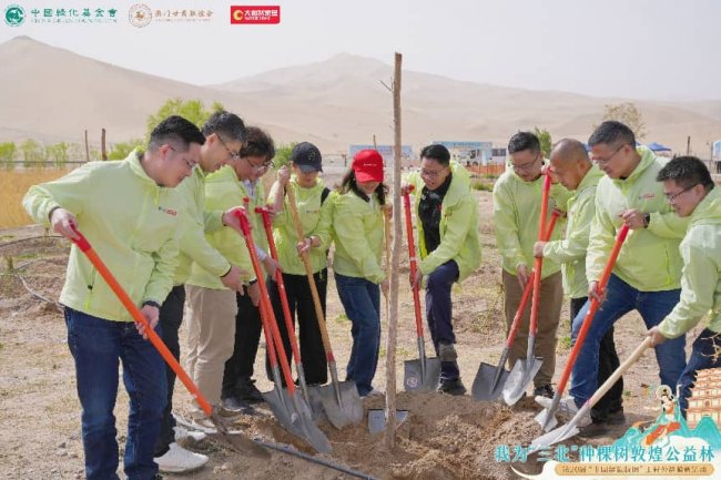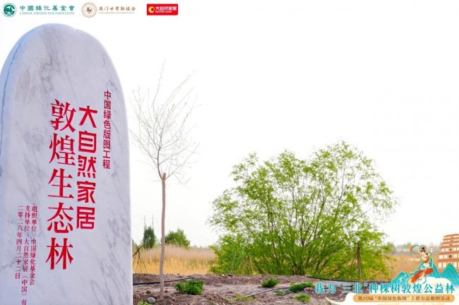 4月22日世界地球日,大自然家居联合中国绿化基金会、澳门甘肃联谊会,在甘肃敦煌启动“我为‘三北’种棵树·敦煌公益林”——第20届中国绿色版图工程,积极响应国家“三北”工程六期建设,以生态造林守护敦煌绿洲。中国绿化基金会、甘肃省委统战部、甘肃省政协、澳门甘肃联谊会、澳门中联办相关领导、嘉宾,以及澳门青少年国情研学代表团、敦煌中学等代表齐聚一堂,共同见证公益林正式启幕。