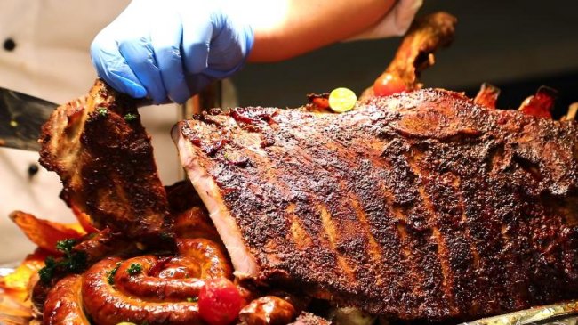 天津富力万达文华酒店美食汇全日餐厅将海味的鲜、炙烤的香,凝成一场「海鲜烤肉」主题自助晚餐,邀您共赴烟火滚烫、鲜香满溢的味蕾盛宴。除此之外,厨师团队精心准备多款刺身、特色甜品,以及各式中西式美食。