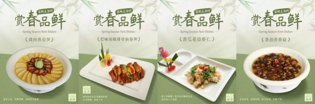 【春蔬清烹?本味鲜雅系列】:咸肉蒸春笋——时令春笋,鲜脆清甜;惹味胡椒排骨焖春笋——辛香提鲜,鲜爽适口;茶油蒸香菇——茶油添香,菌香本味;黄瓜花烩虾仁——脆嫩清甜,鲜雅宜人。