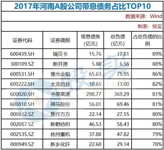 然而,在78家A股豫企中,2017年公司带息债务占总负债比例最高为瑞贝卡,为89%。新开源排在第二位,88%;其次为豫光金铅的86%。